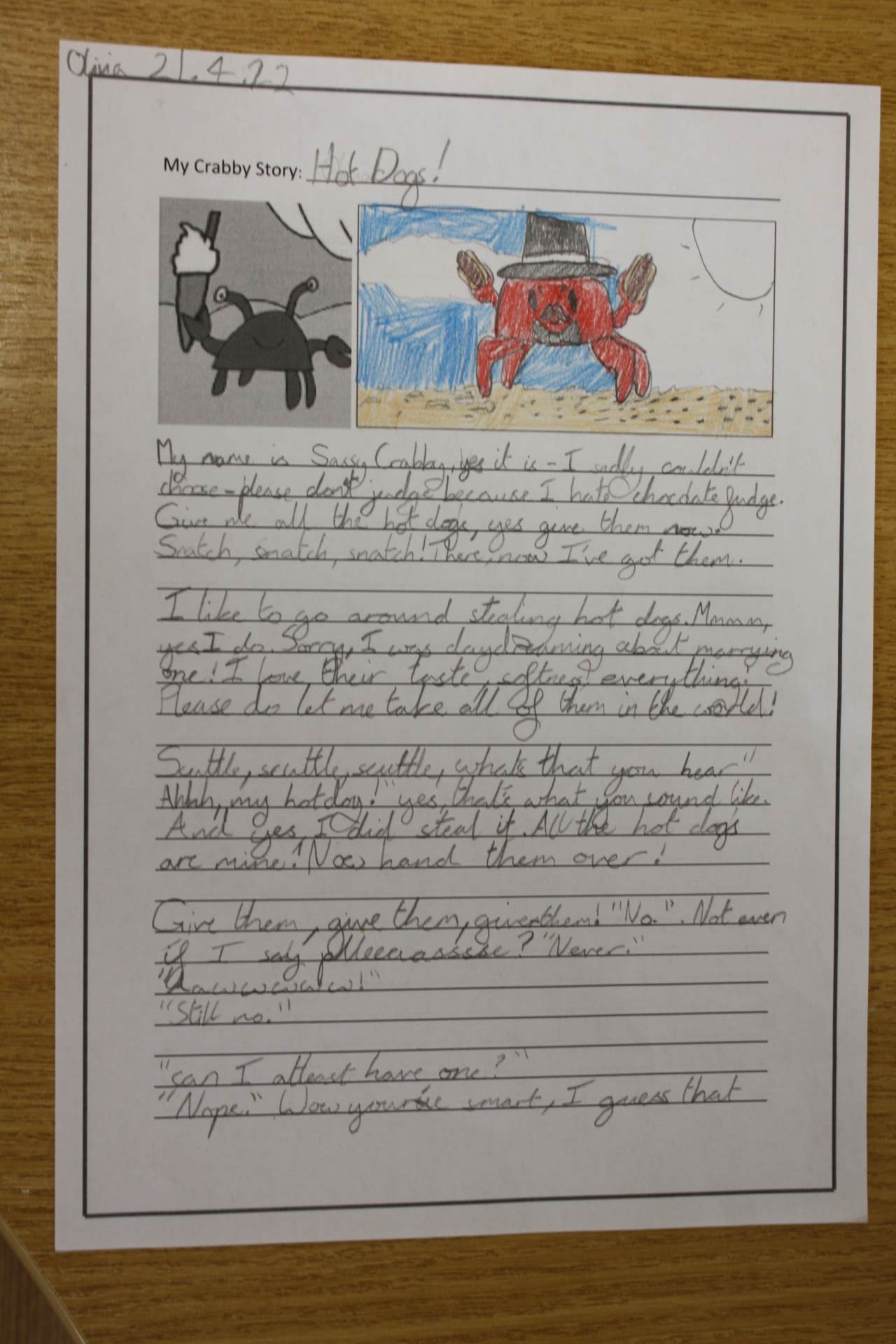 We have been fortunate to enjoy a visit from award winning author Nigel Lungenmuss-Ward. Nigel's message to the children was to dream big and this was not only evident through the message in his story but also by the fact that the book is illustrated by his 9 year old son Robbie. As well as sharing his story Freddie's Impossible Dream, Nigel worked with the children to write their own stories based on the character Crabby.